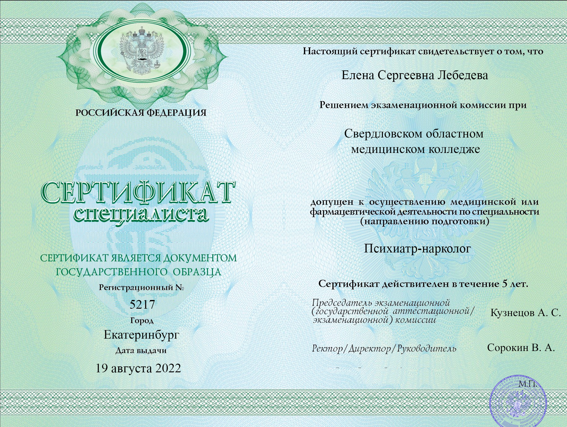 Елена Сергеевна Лебедева врач нарколог клиники доктора Стукаловой в Анапе